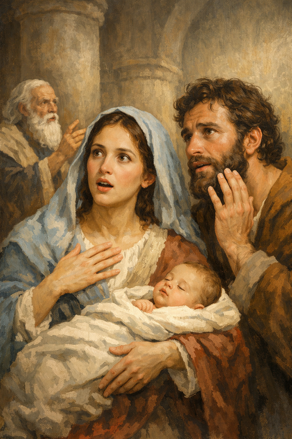 Ils s’étonnèrent des paroles prophétiques prononcées par Siméon et des dires d’Anne, qui tous deux, avec les yeux de l’esprit (l’esprit intérieur) , avaient reconnu dans l’enfant porté à Jérusalem pour la circoncision, le Rédempteur non seulement des juifs, mais de tout le genre humain, celui qui était venu pour libérer l’esprit des liens de la matière. Bien que les juifs fussent habitués à recevoir des communications directes au moyen des prophètes, leur prophéties n’acquéraient de valeur pour les juifs, qu’au moment seulement où elles commençaient à se réaliser. Ils espéraient la venue d’un messie, mais cette espérance se basait sur des désirs terrestres, ils espéraient en un messie de descendance royale, né dans un palais et qui, en grand héros, les libérerait du joug des romains. Mais que le fils d’un charpentier dont ils connaissaient le père nourricier, puisse devenir leur Rédempteur, c’était trop, et cela ne pouvait se concilier avec leurs espérances, ni être compris de leur esprit. Marie, avait donné jour à un enfant, sans avoir donné son affection à aucun homme ; elle était devenue mère sans avoir éprouvé le vrai sentiment de mère dans toute sa plénitude ; car, en général, c’est seulement l’enfant qui constitue le lien d’union entre la vie de l’homme et celle de la femme, et qui unit ceux-ci en un seul tout, la famille. Marie, devenue mère, éprouvait bien sûr une joie à contempler le fruit de ses entrailles, mais ce qu’elle ressentait était plus un sentiment de compassion pour le nouveau-né nécessitant des soins, que le gage de l’amour de son mari, obéissant seulement à son sentiment de femme et mère, qui l’unissait au nouveau-né. Ce qu’elle avait entendu de Siméon, lui était apparu encore plus mystérieux, particulièrement ses dernières paroles : « Voici que celui-ci est placé pour la ruine et pour l’élévation de beaucoup en Israël et pour être un signe de contradiction; une épée te transpercera l’âme même, afin que les pensées de nombreux cœurs soient révélés ! Avoir porté en son sein, comme enfant humain ; Dieu même, le messie attendu, le Rédempteur spirituel non seulement de son peuple mais de toute l’humanité, c’était des idées que son esprit ne pouvait saisir. Elle, encore au jour de ma mort sur la croix, m’a pleuré non pas comme Dieu, mais comme homme seulement, en tant que son enfant ; c’est seulement après ma résurrection, aussi bien en elle, qu’en mes apôtres, que fut affermie la foi en ma divinité, ce qu’ils (c’est-à-dire ce mystère) n’avaient pu comprendre jusqu’alors, alors même que j’avais tout expliqué en tant de façons diverses. Il leur manquait cependant, malgré ma doctrine et mes œuvres, la ferme conviction que moi, homme de chair et d’os comme eux, qui mangeait et buvait à égal d’un homme ordinaire, j’étais Dieu le Seigneur de tous les êtres et de la création infinie, qui sous forme humaine, d’enfant fait homme, devrait finir sur la croix, symbole en ces temps du plus grand opprobre et du déshonneur !
